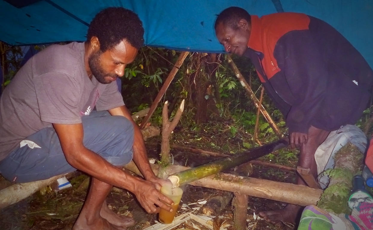We arrived at base camp where some of our team had gone ahead and built a hut and boiled a billy — which in this case was a bamboo stem. Eat your heart out coffee snobs, I’ve had coffee from a bamboo stem on top of a remote PNG mountain.
