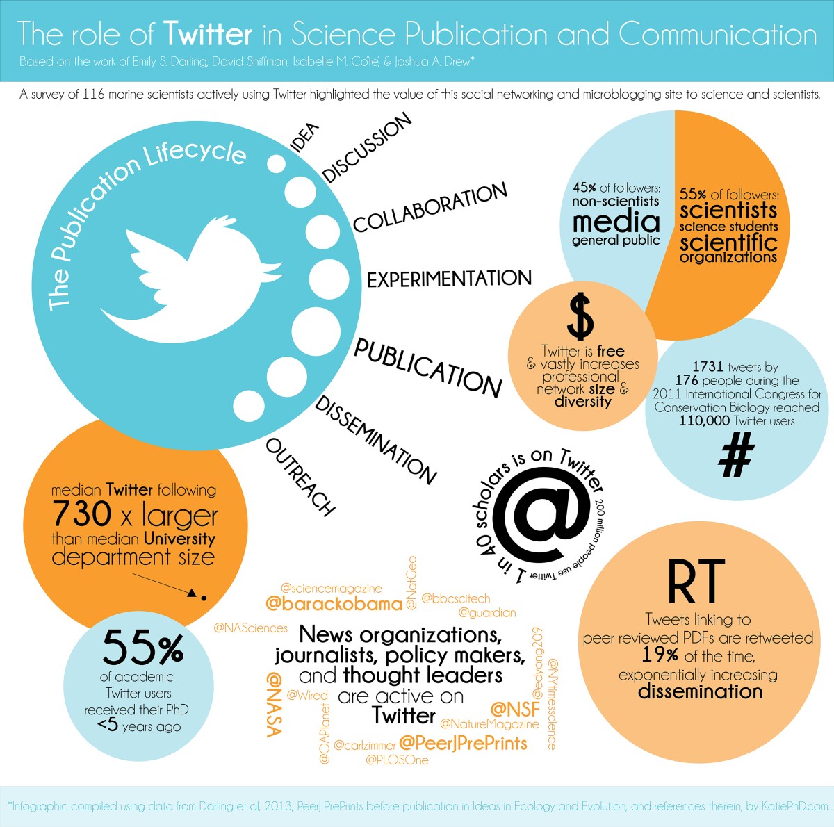 Infographic: Twitter’s Role In Science Publication And Communication. Image credit: Catherine Pratt via katiephd.com and visual.ly. Click for a larger version.